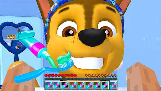 ЧИСТИМ ЗУБЫ ГОНЩИКУ В МАЙНКРАФТЕ - ЩЕНЯЧИЙ ПАТРУЛЬ МАЙНКРАФТ