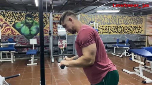 Разгибание на блоке прямым хватом