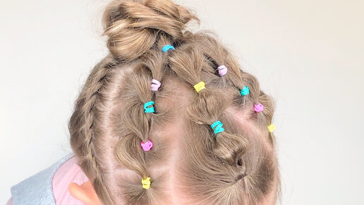 Интересная и яркая прическа для девочки из резиночек
