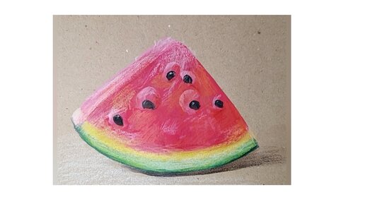 Как нарисовать кусочек арбуза гуашью и акварельными карандашами.