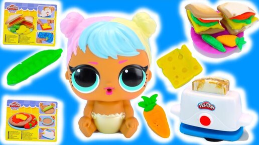 Огромный Пупсик Кукла ЛОЛ Делает Еду Пластилин Плейдо Сэндвич Вафли Play doh Играем Как мама