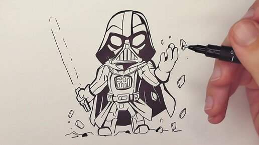 Дарт Вейдер. Как нарисовать известного Злодея. Часть 1. Черно белый контур.