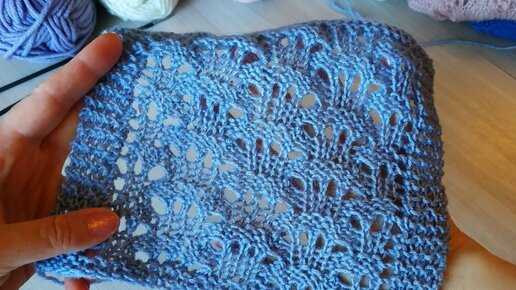 Ажурный вертикальный узор с сочетанием лицевой и изнаночной глади. Описание узора для спиц.