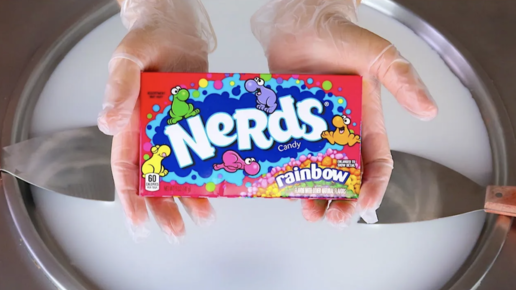 ASMR Nerds Candy Rainbow Ice Cream Rolls Странно сытное жареное мороженое Еда 108mamatv