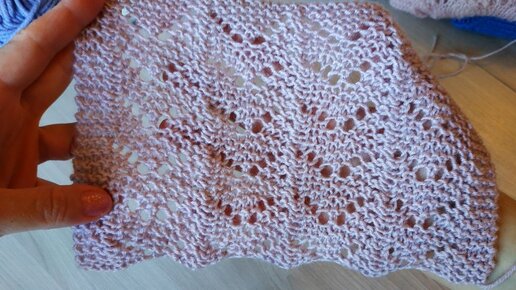 Волнистый ажурный узор на платочной вязке. Подробное описание узора для спиц.