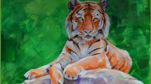 Как нарисовать тигра. Тигр лежащий на камне. Акрил