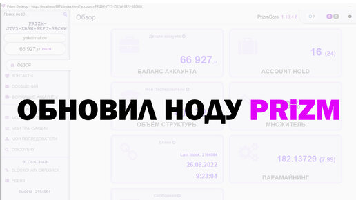 Обновил Ноду Криптовалюты Призм / Prizm Core