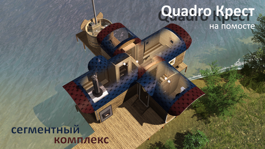 Проект создавался в 3D конфигураторе. Quadro Крест - (сегментированный банный комплекс на 6 человек)