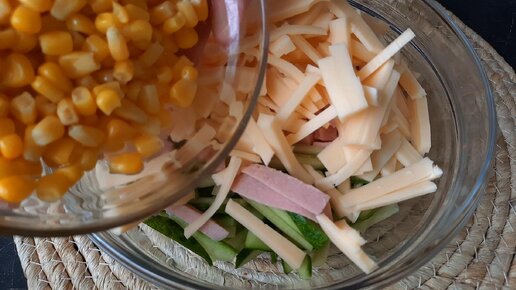 Быстрый салат на праздничный стол с кукурузой. Аппетитный и сытный.