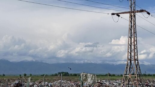 Черные коршуны на свалке в Киргизии