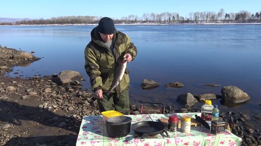 Как жарим рыбу мы в тайге и без муки, но в чешуе :) Ленок, жареный по таежному