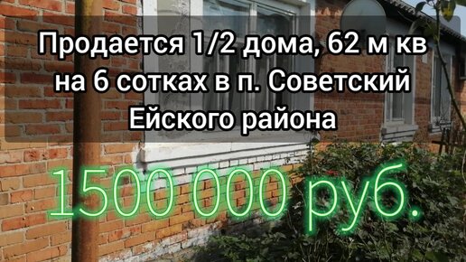 Продается 1/2 дома на 6 сотках, газ, асфальт п. Советский Ейский район Краснодарский край