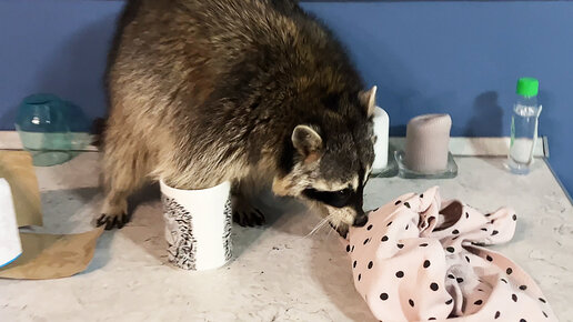 Енот Гора пробралась на кухню и постирала платье. Прогулка с сервалом Микки
