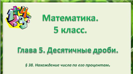 Математика 5 класс.Глава 5. Нахождение числа по его процентам