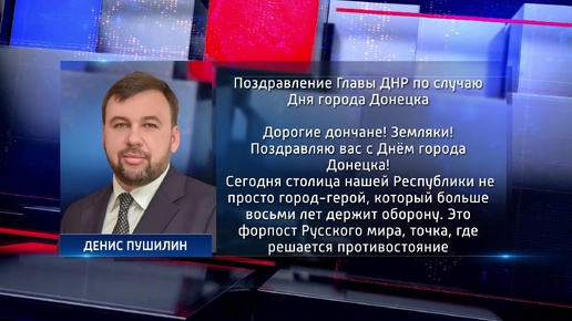 Денис Пушилин поздравил жителей Донецка с Днём города. Актуально. 28.08.2022