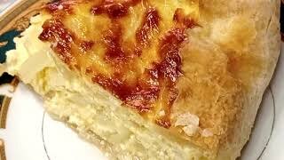 Нежнейший луково - сырный пирог на слоеном тесте! Домашние просят готовить его каждую неделю!