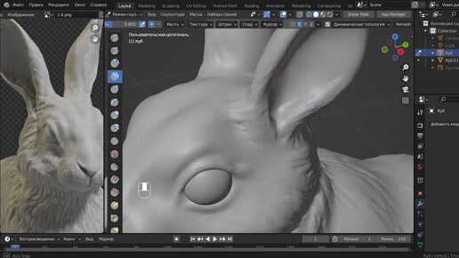 Заяц. Урок 3. Динамическая топология в Blender 3d. Подготовка модели к 3д печати