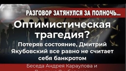 Оптимистическая трагедия? Потеряв состояние Дмитрий Якубовский, все равно не считает себя банкротом.