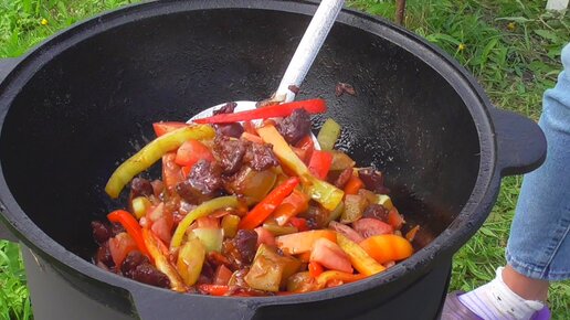 Рагу Овощное с мясом в Казане! На костре всегда вкусней!