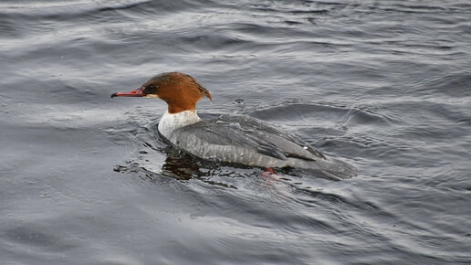 Шустрые птенцы и их мамаша. Длинноносые крохали на Финском заливе