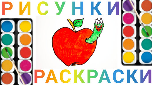 Яблоко и Червь - как нарисовать и раскрасить простые рисунки для детей