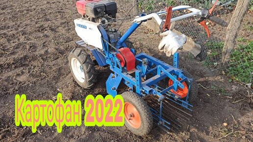 Копка картошки мотоблоком Нева с картофелекопалкой.