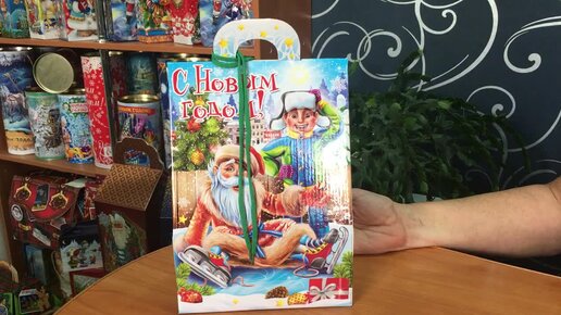 Дед мороз на коньках - сладкий детский Новогодний подарок в картонной упаковке