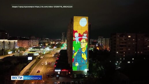 В Красноярске на улицах Красной Армии и Академика Киренского включили мэппинг-подсветку домов