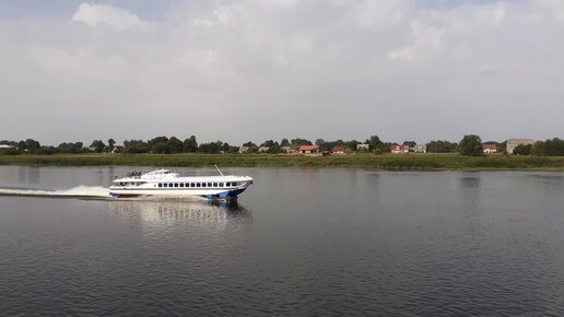 Советская "Ракета" на подводных подушках следует по реке Неман из Ниды в Каунас. Снято с набережной г. Советска Калининградской обл.