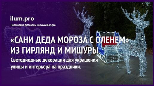 Фотозона с мишурой и гирляндами «Сани Деда Мороза с оленем» / Айлюм Про
