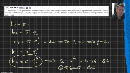 Мощности пяти различных электромоторов составляют возрастающую геометрическую прогрессию. Мощность самого слабого электромотора — 5 кВт, а т