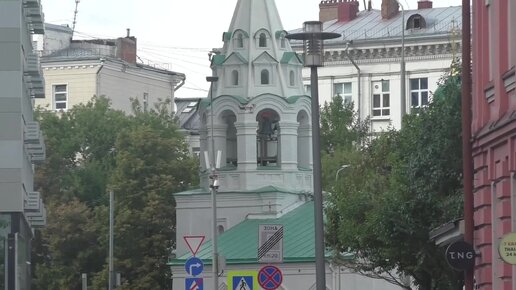 Арбат - мужчина мирно спит у грузинского ресторана и вид на Москву. Как дом навис над храмом. И не совестно разрешать такое строить