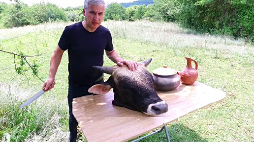 РАЗДЕЛКА ГОВЯЖЬЕЙ ГОЛОВЫ и ГОТОВИЛ МЯСО в ГЛИНЯНОЙ ГОРШКЕ