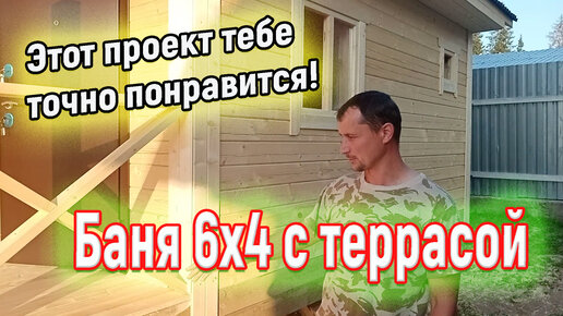 Оптимальный проект Бани из бруса 6х4 с террасой от СК Доминика