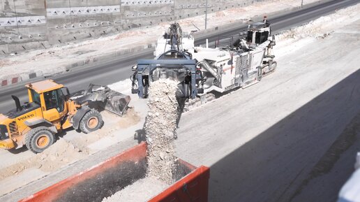 Горный комбайн активными темпами выполняет разработку скального грунта на 8 этапе трассы Таврида. Вид с нового ракурса