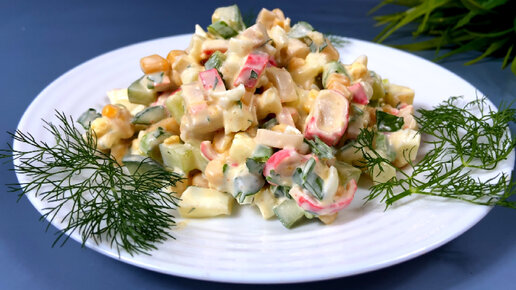 Салат с крабовыми палочками который все любят и знают (ингредиенты простые, готовится быстро, а вкусно получается всегда)