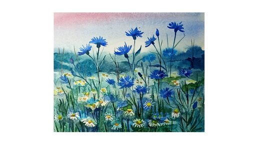 Вечер на лугу. Акварельный этюд.