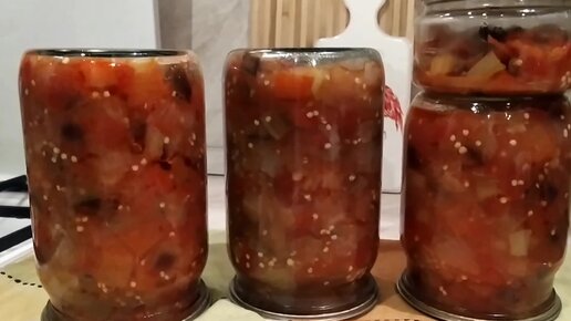 Салат из баклажанов, помидор, болгарского перца и лука! Попробуйте какое вкусное сочетание овощей! Это просто "кусочек лета" зимой!