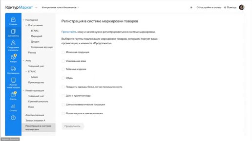 Процессы работы с маркированной молочной продукцией и воды в Контур.Маркете