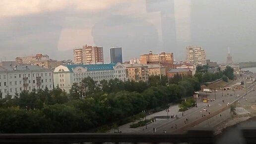 Вид на Красноярск с моста через Енисей, лето 2022