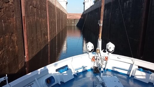 Проходим шлюз и поднимаемся вместе с теплоходом на 13 метров