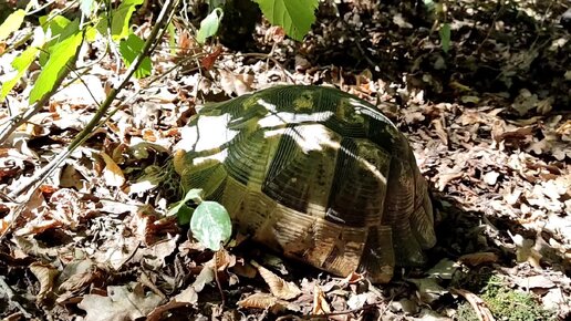 Пошли в лес за ягодами и встретили черепаху.