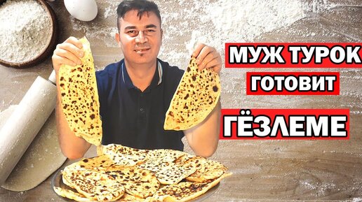 Муж турок готовит турецкие лепешки с сыром - гёзлеме на турецкий завтрак