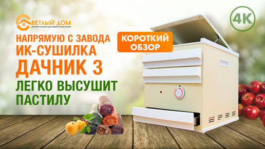 4к. Инфракрасная сушилка для овощей и фруктов Дачник 3. Краткий обзор новинки. Её преимущества по сравнению с сушилками Дачник 4 и Дачник 2.
