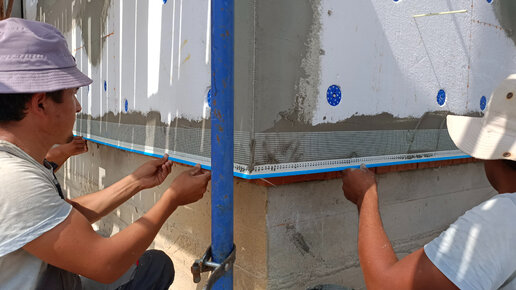 Капельник с сеткой в системе СФТК Мокрый Фасад устанавливается по низу балконов и в месте примыкания фасада к цоколю. Как ставят капельник