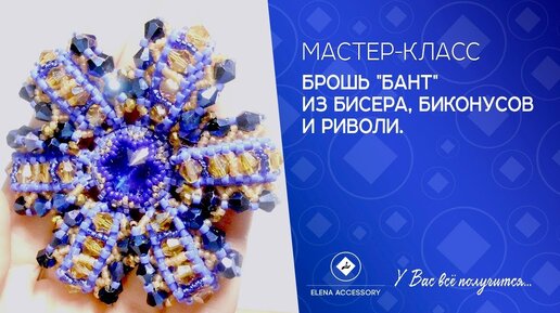 Брошь Бант из бисера, бусин и риволи.