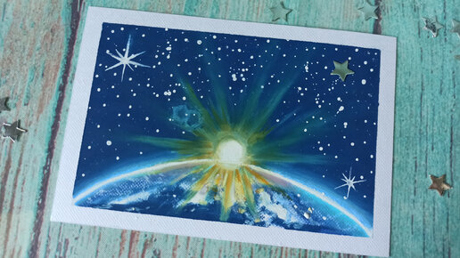 Как нарисовать землю и солнце в космосе масляной пастелью