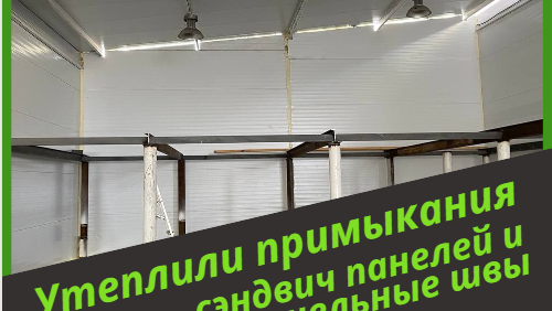 Утеплили примыкания сэндвич панелей к полу, а также межпанельные швы