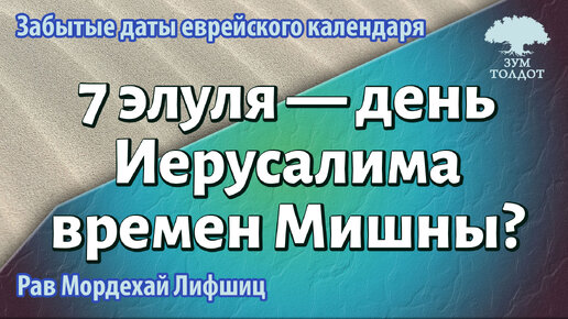 7 элуля — день Иерусалима времен Мишны? Рав Мордехай Лифшиц