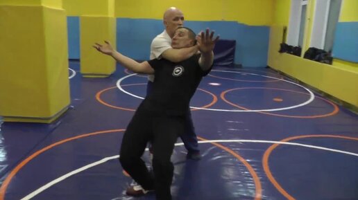 От толчка двумя руками в грудь. В. Н. Крючков